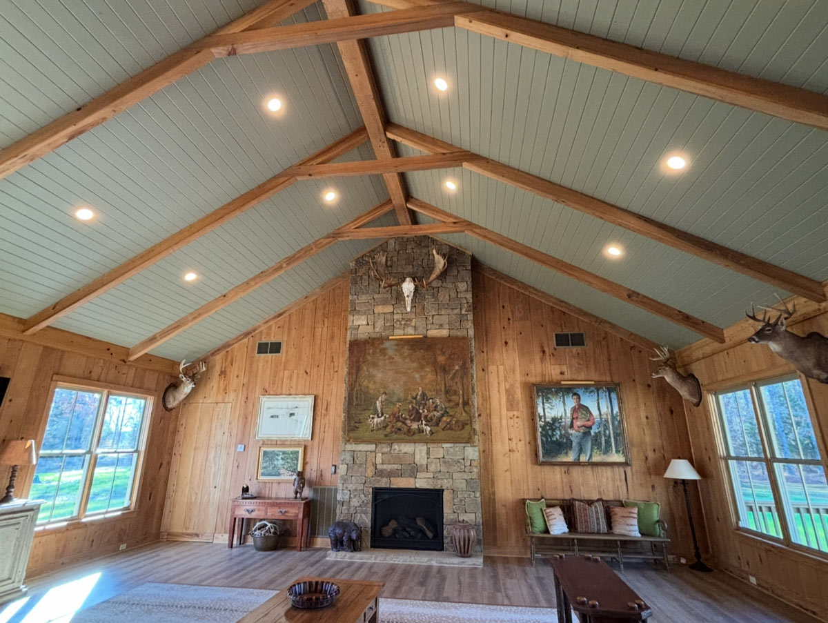 This beautiful cabin is located outside of Flora, MS deep in the middle of the woods. Robinson Electric was asked to design the lighting and electrical layout for the great room addition and kitchen remodel. We also installed a Kohler 26Kw generator with a wifi monitoring module to ensure that appliances, heat, or AC keep running even during an outage or storm.